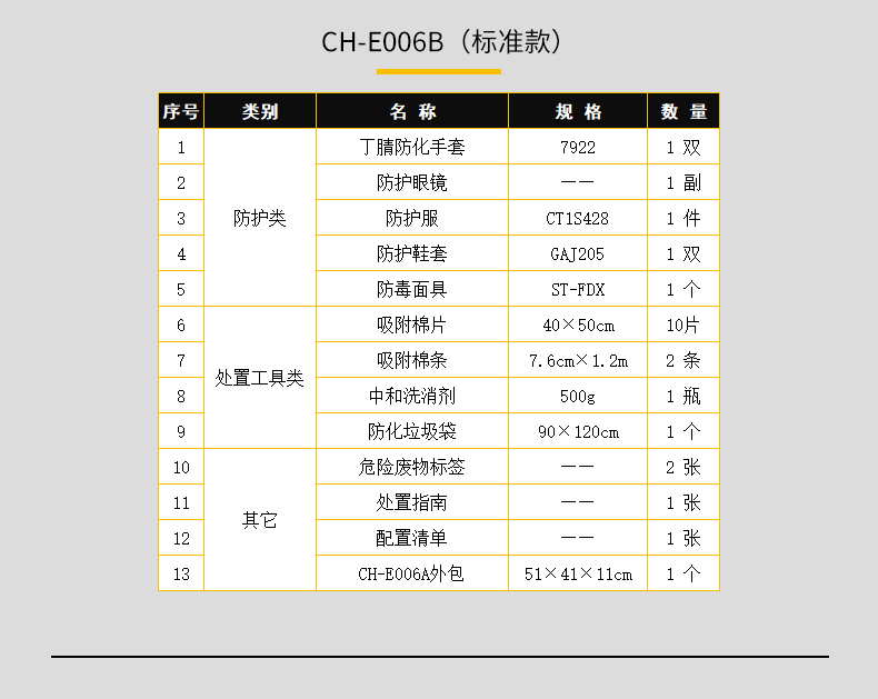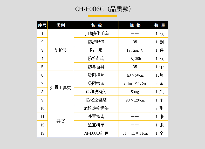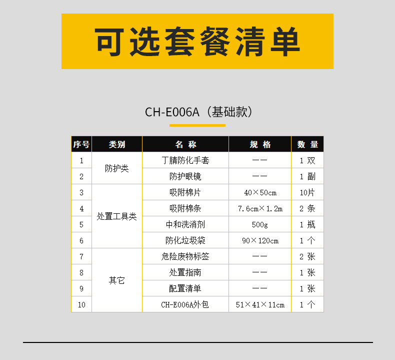 | 產品名稱: | 化學泄漏處置包 (品質款) | ||