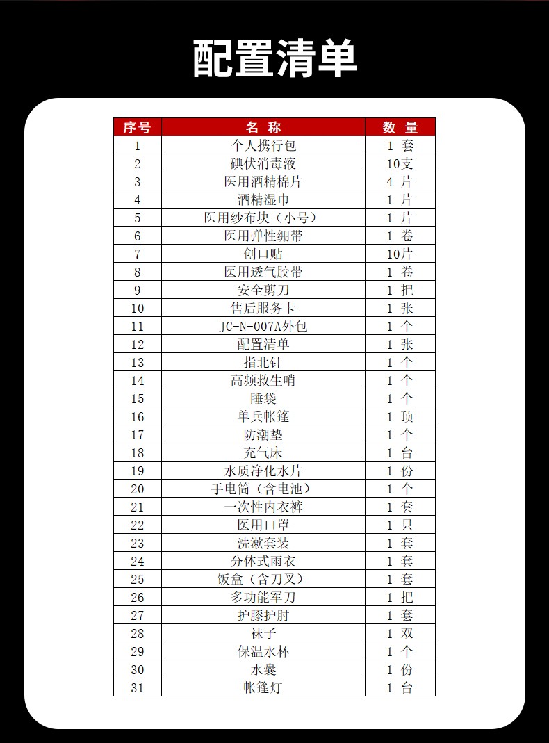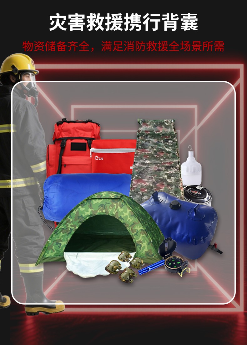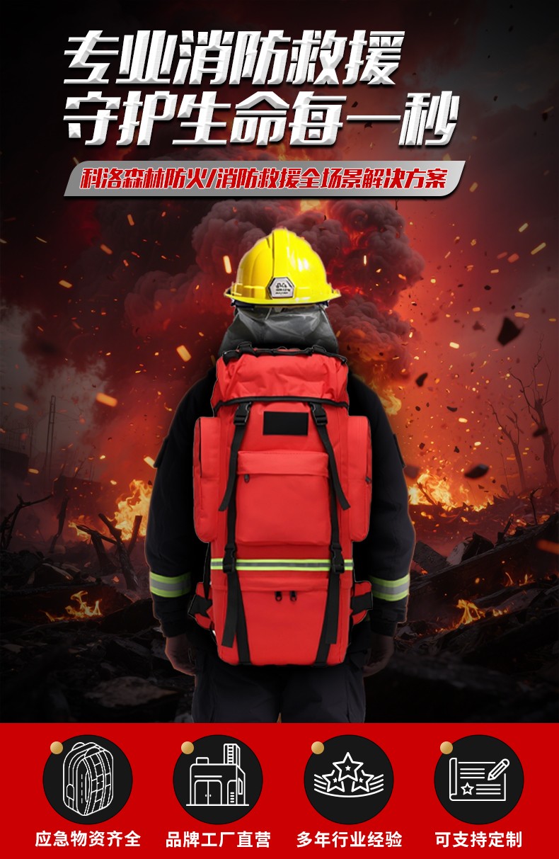 | 功能介紹: | 專為消防員、應急救援隊員等一線人員設計,適配森林火場撲救等場景,內置應急工具、防護用具、生活用品及醫療急救用品,滿足72小時野外自我保障與緊急救援需求,是快速響應、高效處置災害的必備攜行裝備。 | ||
